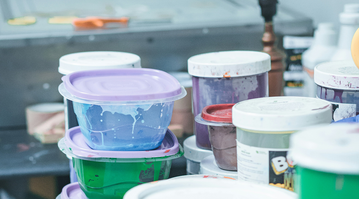Färg, lack, penseltvätt och olika lösningsmedel