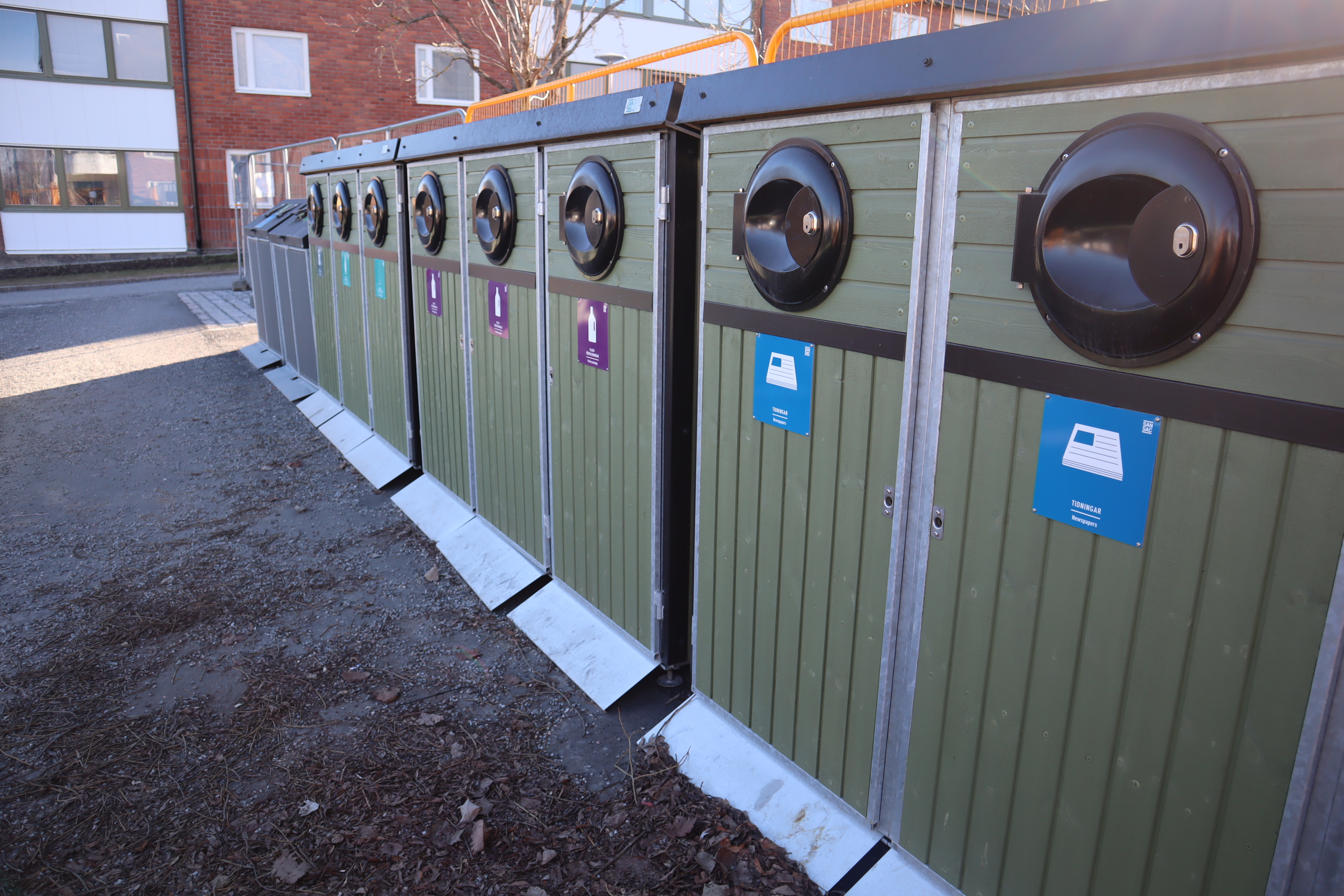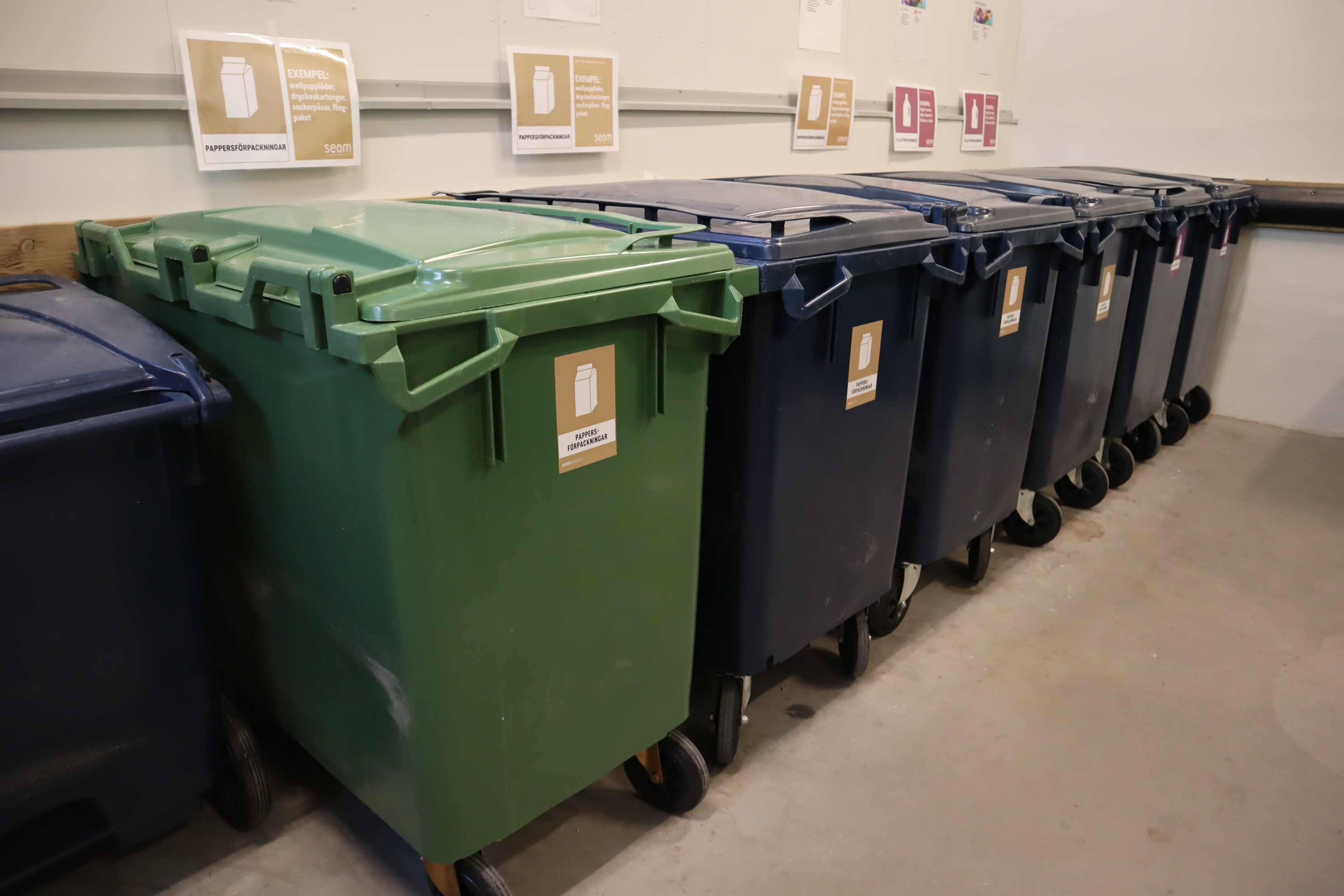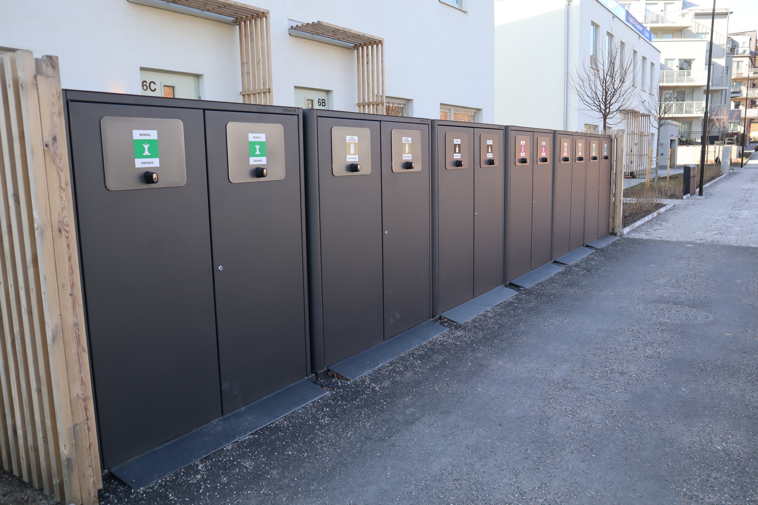 Brf Kungsvägen i Edsviken har valt kärlskåp för insamling av alla fraktioner.