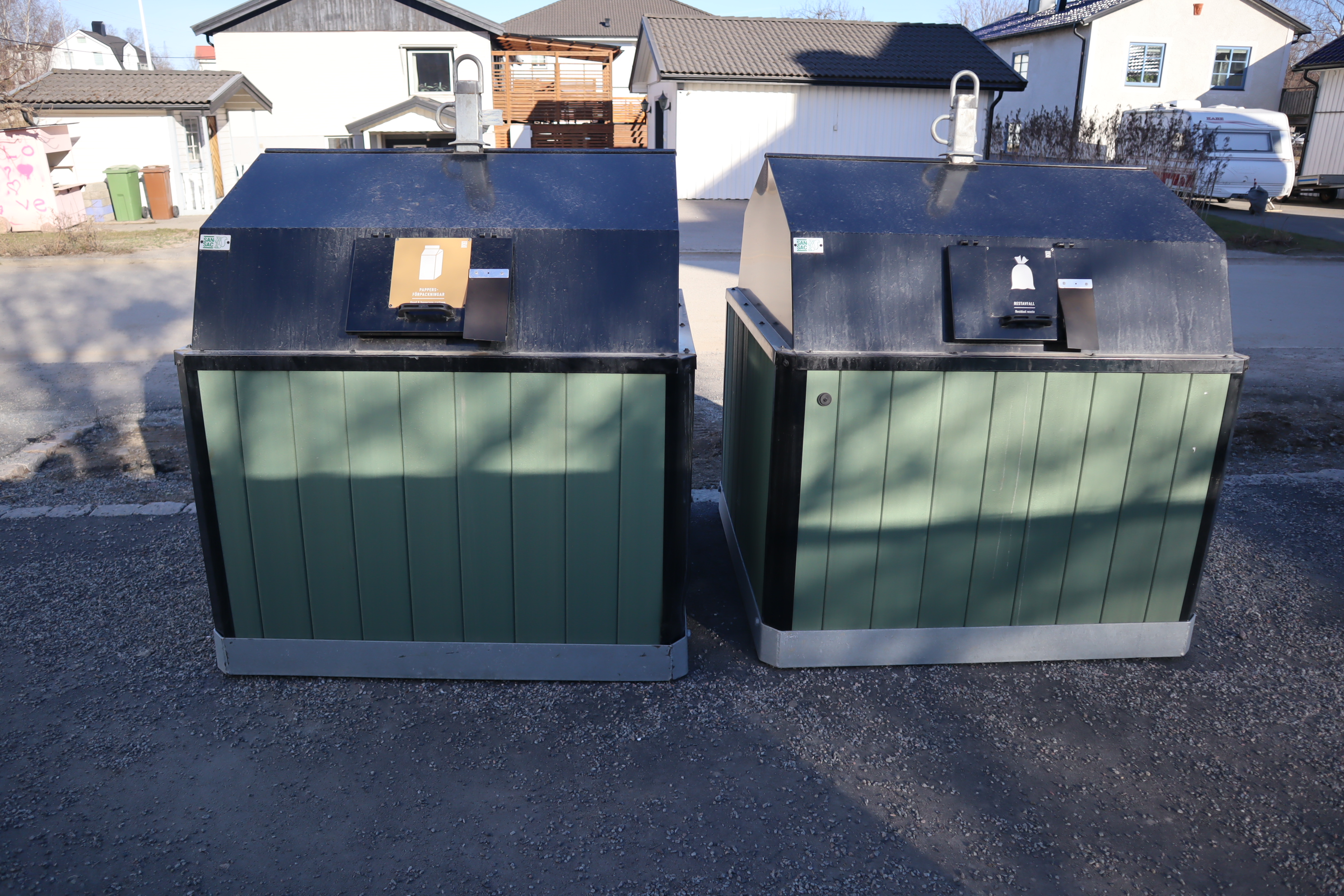 Sollentunahem på Rotsundagårdsvägen har placerat kärlskåp för förpackningar och matavfall samt krantömda behållare för restavfall.