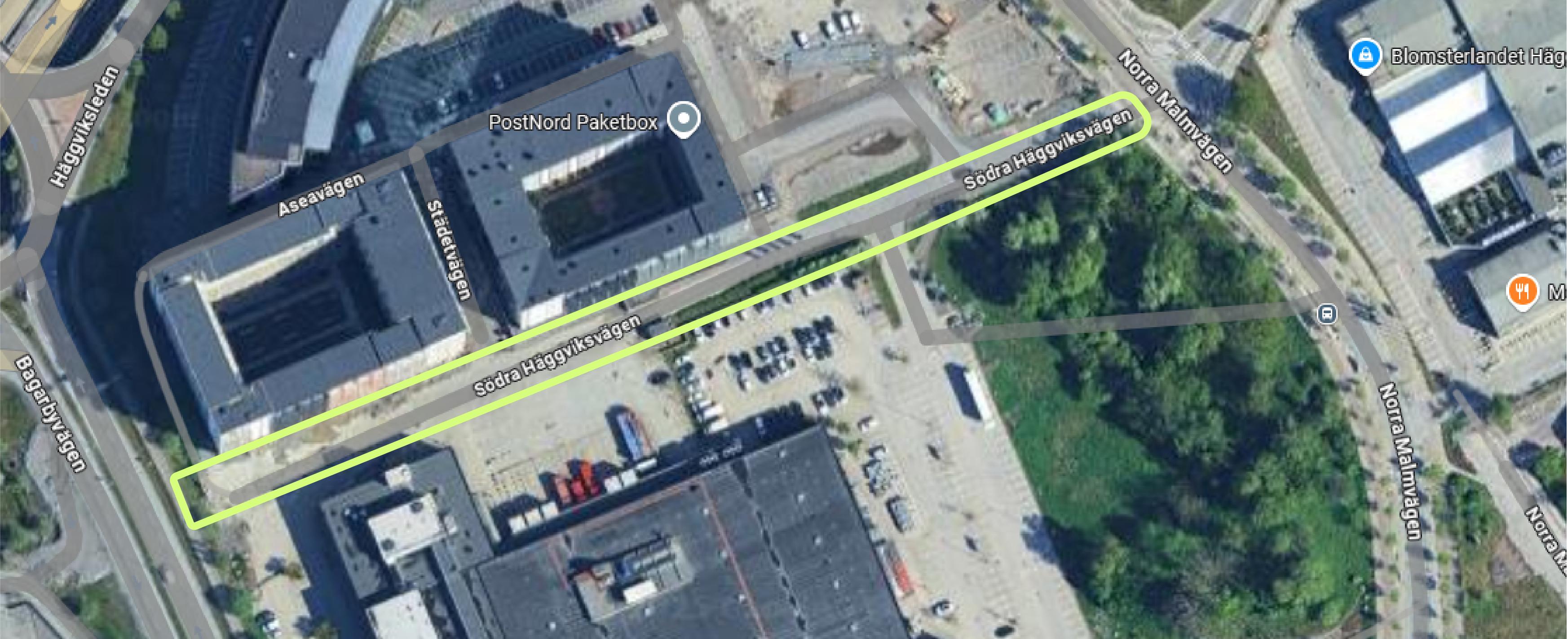 Första etappens arbete sker mellan Bagarbyvägen och Norra Malmvägen där vi har satt upp stängsel och stängt av för gående och trafik längs med Södra Häggviksvägen.